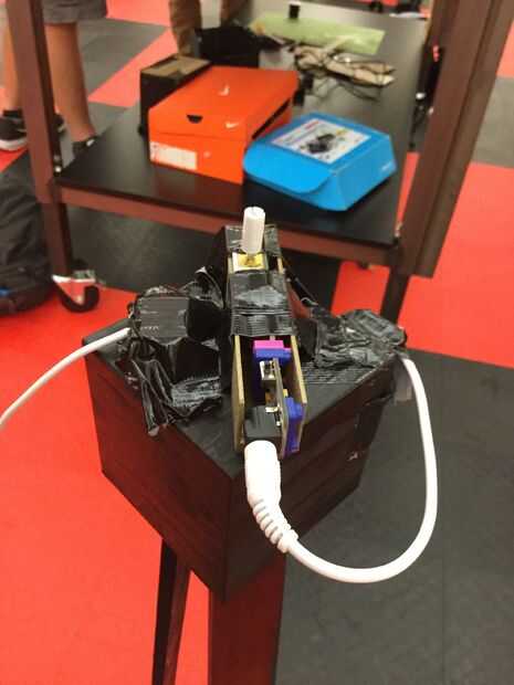 -En primer lugar, el asiento los cachitos dentro el bote 3-d que imprimió. Esto puede pegar con cinta adhesiva con cinta adhesiva o pega en la parte superior del trípode.