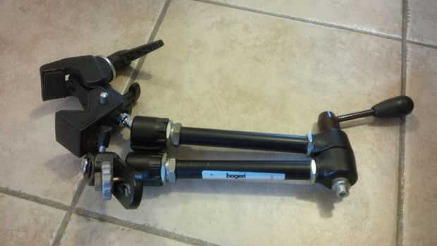 Este es el camino más fácil que te muestro en el video. Ya tenía un montaje de cámara de "magic arm". Un extremo es un soporte y el otro extremo es un montaje de cámara. El soporte se supone que permitirá conectar el brazo de magia a una mesa, escritorio, poste, árbol u otro objeto rígido. En este caso, utilice el soporte para sostener el teléfono y apuntar la cámara hacia atrás sobre sí mismo (hacia el soporte). Ver el video de una demostración.