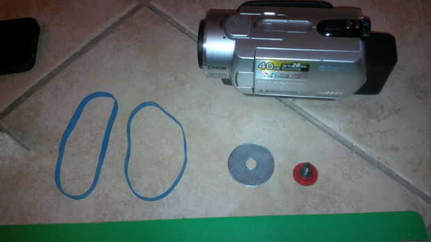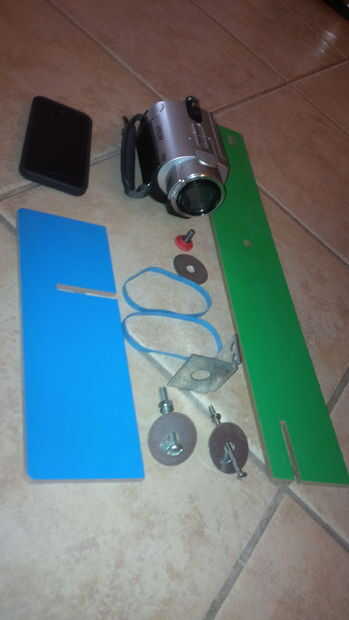 Lo mismo pasa con la pieza verde de madera. Hacer muescas en los extremos si es necesario y un agujero en el centro (opcional) para que pueda fijar un mango o empuñadura de pistola. Le permitirá mover la plataforma entera (teléfono, cámara de vídeo y madera) con una mano.