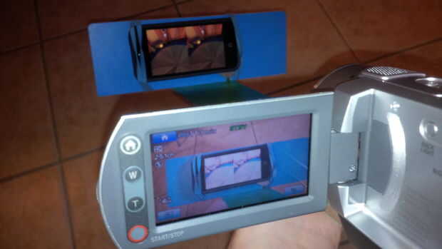 Ves en mi foto cómo alejar al principio, luego acercar y llena toda la trama de mi cámara de video la pantalla del teléfono. Es un tiro perfecto para grabar el juego.