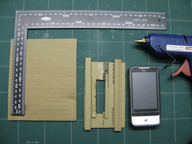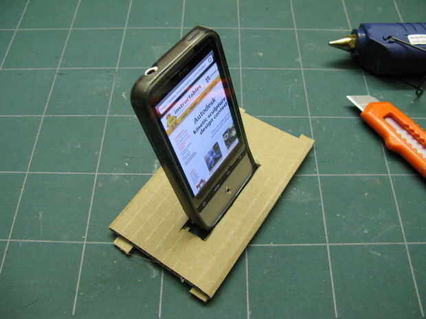 Hacer una abertura para el teléfono. Ajustar la apertura para que su teléfono se ajusta bien, con un ángulo bastante llano para que no se caiga hacia atrás.