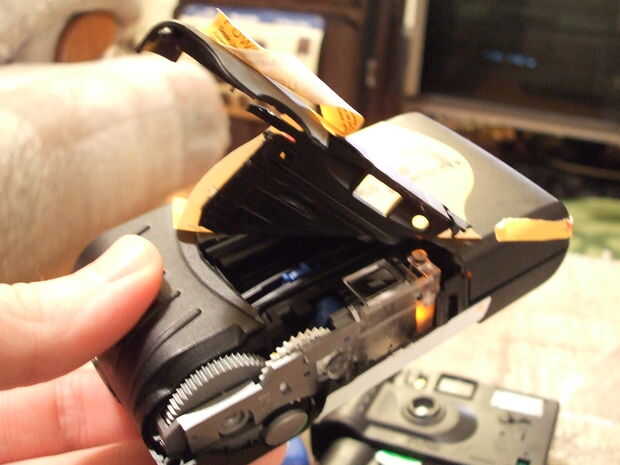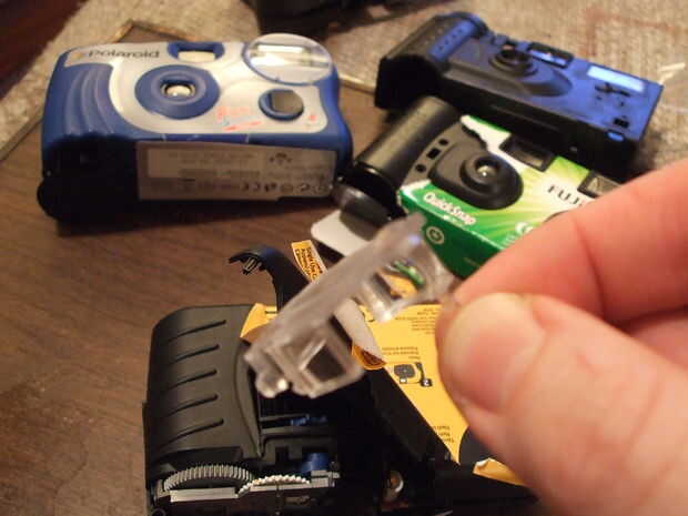 Si usas un tipo diferente de cámara, como el Fuji se muestra, el objetivo puede ser una pieza que se desliza hacia fuera. Esto es bueno también, pero puede ser más difícil montar a su caso.