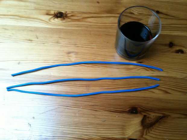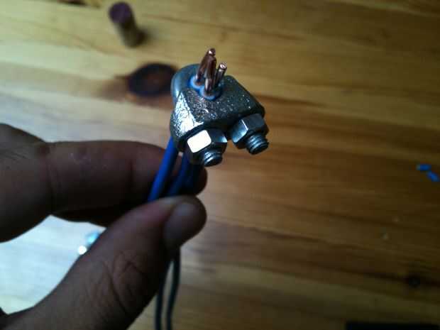 Fije tres cables con clip de un cable. Me quité también el aislamiento usando un knife (sólo pensaba vería refrigerador :)) clip del alambre también será la base (pie?) de este trípode. Fijar otros dos "patas".