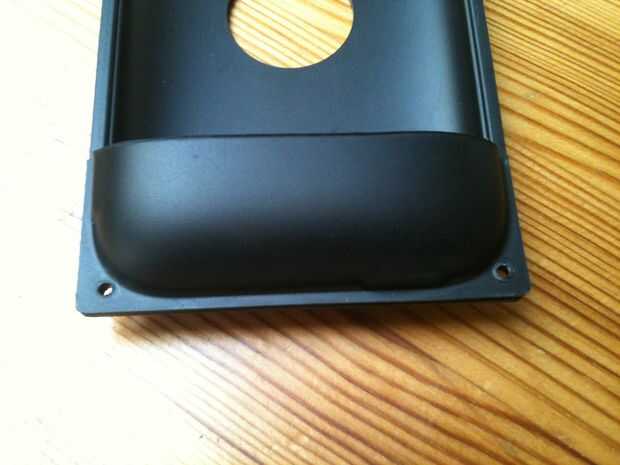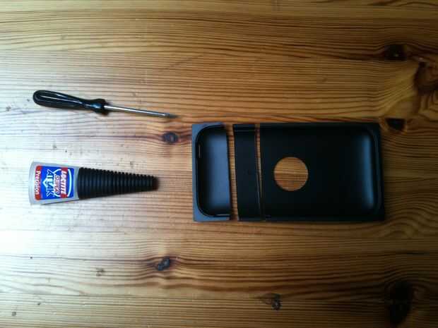 Calentar el punzón (o encontrar un taladro pequeño) a fuego (manténgalo durante un minuto o incluso menos). Con punzón caliente, hacer dos agujeros pequeños (tenga cuidado de no hacerlas demasiado grandes - debe ser lo suficientemente grande como para que los cables sin aislamiento pueden ir a través) en la parte inferior del bolsillo de lo que hiciste antes. No es una mala idea intentar en esa parte de la bandeja que guardaste (fines de experimentación! :)). Así que asegúrese de que se calienta bastante la lezna y saber cuánta fuerza se necesita para hacer un agujero. Puesto que es más "fusión" agujero de piercing, tendrás algunos restos alrededor de los orificios. Les cortar con un cuchillo.