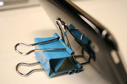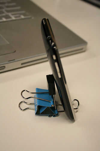Ah el clip binder. Como muchos de nosotros ya conocemos (algunos no), es una de las mejores herramientas para McGuyvering todo lo pueda necesitar.En este caso, he podido elaborar un diseño para un muelle de teléfono de 3 clips de la carpeta grande. L