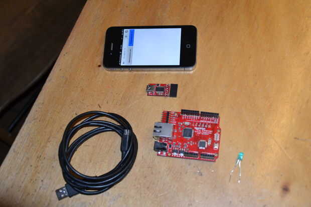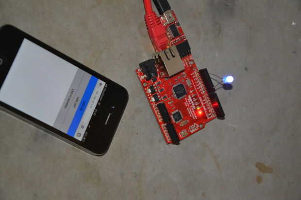 construir un pequeño web corriendo en el arduino con la entrada-salida del ethernet usando HTML y un poco de css. Al enviar una petición HTTP el script lee la solicitud y obtiene una orden de él. No necesitas internet, solamente un trabajo en red una computadora y del teléfono inteligente conectado a la red.