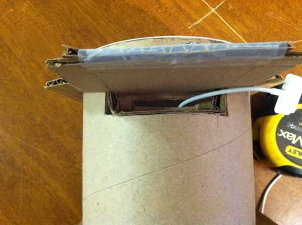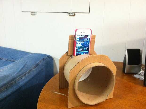 ....... WWMGD! ¿Qué haría SantiagoDumbledore? Él sería upcycle venga viejo cartón ahí para crear un muelle de carga/amplificador. Por lo es lo que hice. Tardó menos de 10 minutos para hacer esto en mi hora del almuerzo.