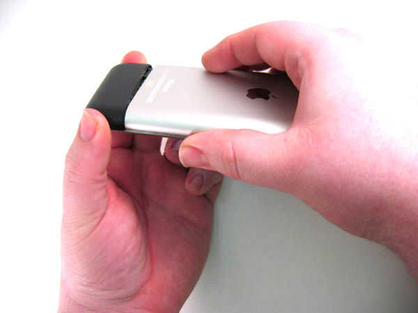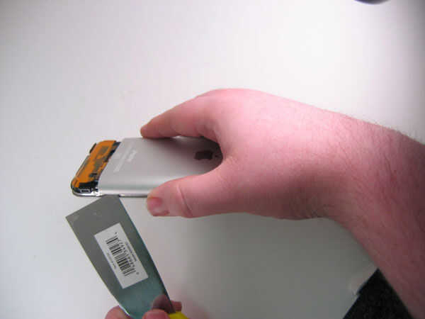 Imagen 3: La primera cosa a hacer es quitar el forro de goma. Usted necesitará su herramienta plana (como una espátula) de la cuña en la ranura y levante suavemente pero tenga cuidado de no doblar el cuerpo.