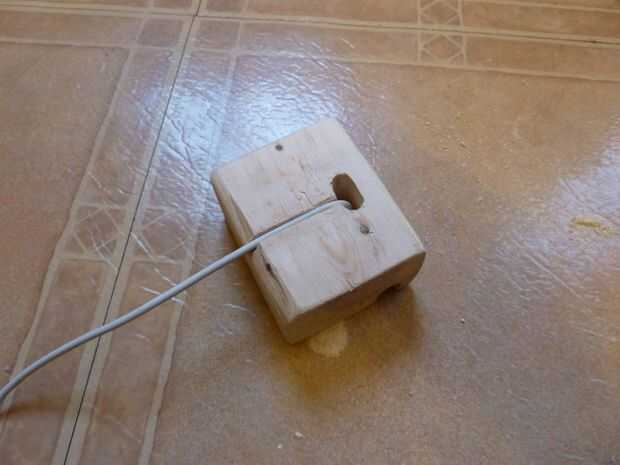 Utilice el taladro con más bits (7/64), hacer una muesca por debajo de la base de madera.