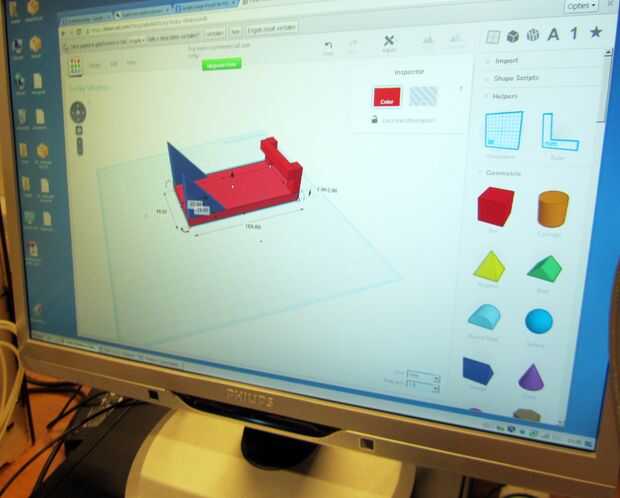 Encontré el programa muy manejable con una paleta de objeto simple que puede recoger una forma básica y luego retocarlo a sus necesidades. Tener experiencia previa con programas similares, como Autocad, ayuda mucho. Tinkercad es manera más simple!