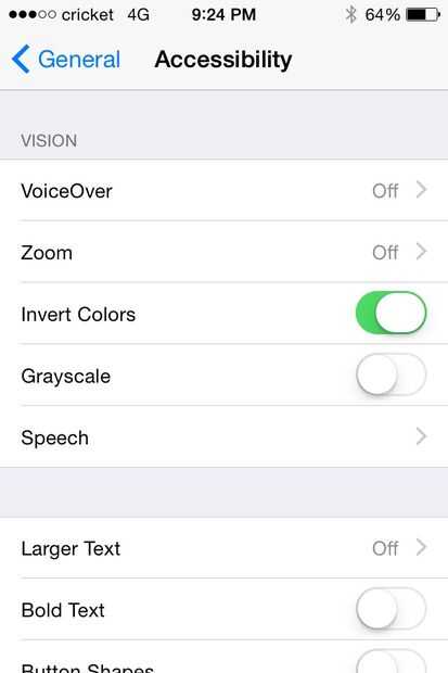 Ahora tenemos que ir a ajustes. Ir a general > accesibilidad y mover el cursor al lado de "invertir colores".