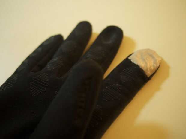 si usted tiene un pedazo de cinta de carbón de izquierda, se puede utilizar para hacer grandes guantes para pantallas táctiles. Cinta de carbono es muy suave, que nunca raya la pantalla. Es un excelente conductor de electricidad y asegurar la operaci