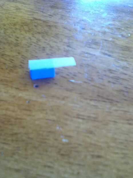 Tomar un rectángulo de espuma y ponga cinta sobre ella luego corte la cinta extra