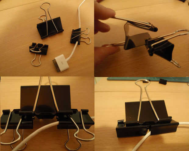 1) Abra el clip mediano carpeta y poner el cable a través de (elegir qué lado entra el cable de)