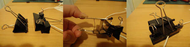 3) abrir el último clip grande y coloque sobre la parte posterior de la Asamblea como se muestra en el cuadro medio
