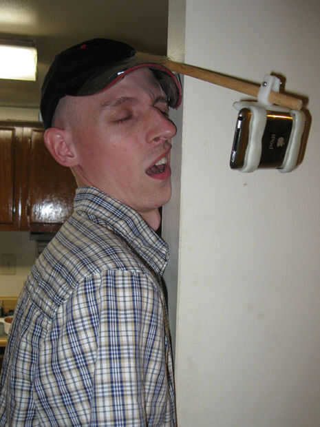 Para hacer tu propio iPhone/iPod Video sombrero todo lo que necesitas es un poco de plástico ShapeLock, un sombrero de repuesto y un taco de madera de 10". Crear tu propio soporte personalizado para colocar el dispositivo y conéctelo a la clavija. Luego fije el pasador a su sombrero y listo a caminar por la calle con estilo.