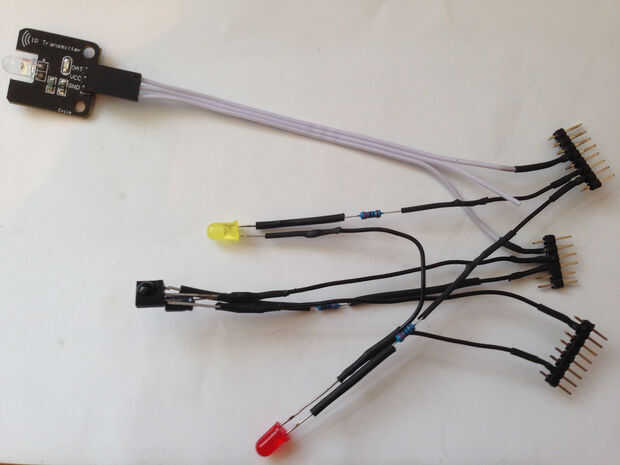 Soldar el cable de tierra del estado del LED al pin 2 (masa de Arduino) y el cable de datos de Rx IR al pin 7 (pin 9 del Arduino).
