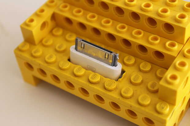 Este es mi dock cargador de iphone. Ha hecho lego de la forma como muchos otros pero este uno no utiliza pegamento y no destruir cualquier lego o los cables. La única parte de lego no es dos pequeños trozos de cinta adhesiva. Es fuerte y portátil y p