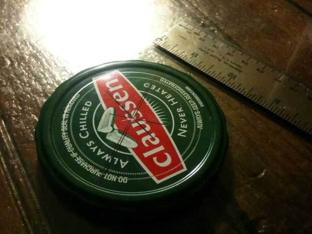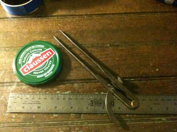 En primer lugar, usted necesita encontrar el punto central en la tapa del frasco y márquelo. A continuación, seleccione donde desea colocar la ventosa en el teléfono. Medir desde ese punto hasta el punto central de la lente de su cámara. Quieres ser muy preciso. Se trata del radio (en el iphone 3gs es 1 1/8" desde el centro de la manzana) para el círculo que usted le escriba en la tapa con la brújula. Marque las posiciones de la lente centradas en el arco del círculo. Recuerda hacer una marca para un agujero vacío para tomar fotografías regulares y colocar sus lentes en ascendente de aumento. Encontrar los diámetros de las lentes y la "seta" parte de la ventosa.