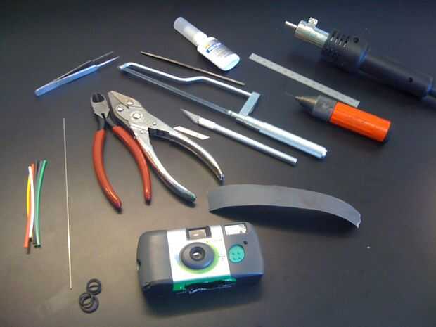 Herramientas: alicates, brocas pequeñas, X-acto cuchillo o sierra, Lima de metal fino o papel de lija, secador de pelo o pistola de aire caliente, pinzas, cortador de alambre