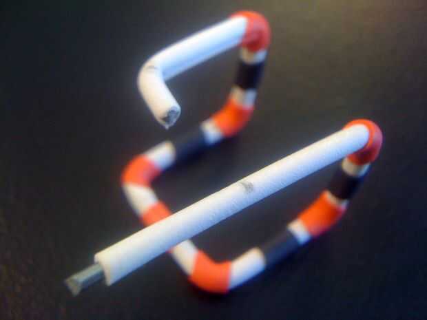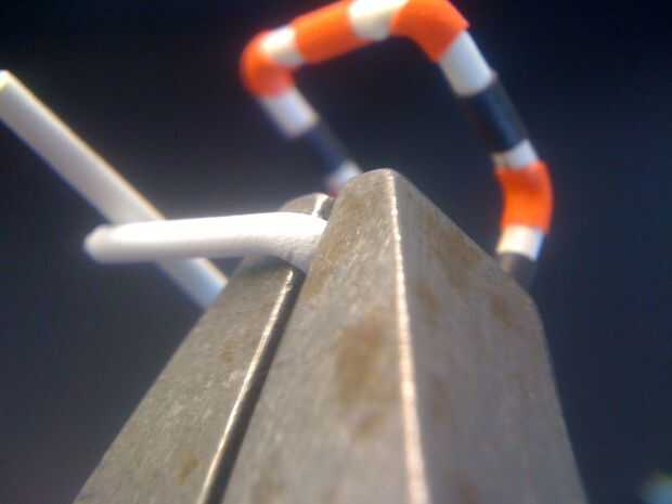 Doblar el alambre como se muestra en la foto y clip. Deje aproximadamente 1/8" después de la curva.