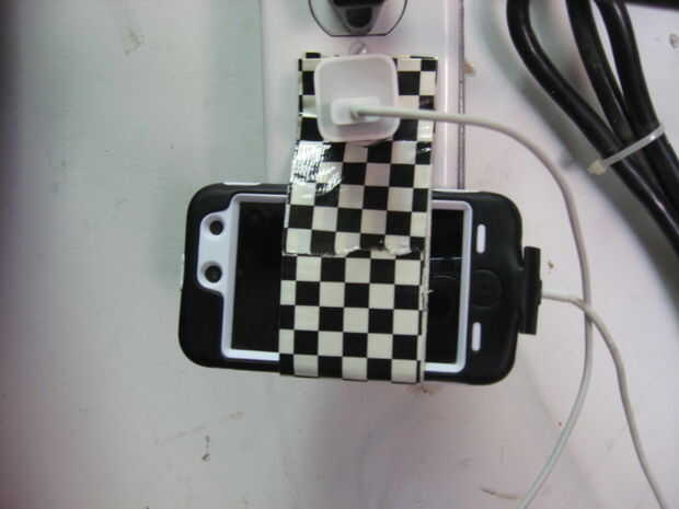 ¿Siempre que deba cargar su teléfono pero no hay ninguna mesa cerca de? Si es así, llegaste al lugar correcto. Esta invención permite el cargador para el teléfono. El teléfono es sostenido por un soporte de cinta de conducto que se conecta a su cargador. Este invento es muy fácil de usar y unos cinco minutos. Disfrutar.