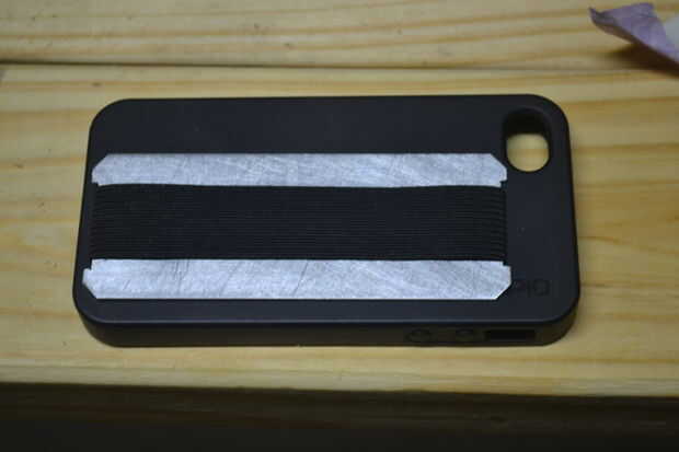 Una vez que se cortan las ranuras, alimentar el elástico aunque cada uno cortar y cortar lo suficiente para que fácilmente se envuelve alrededor del exterior de la caja con el aluminio y se sobrepone dentro de la caja.