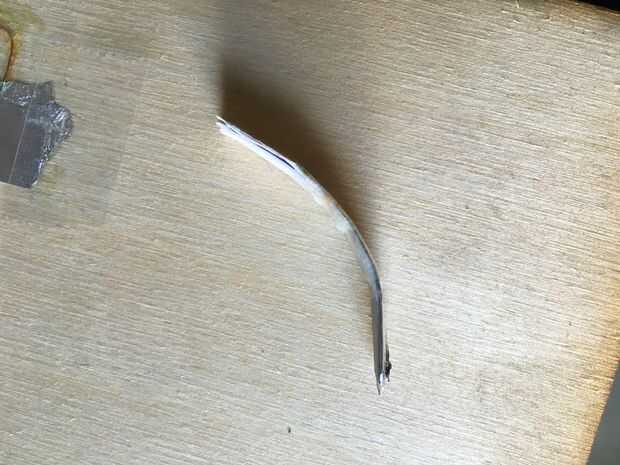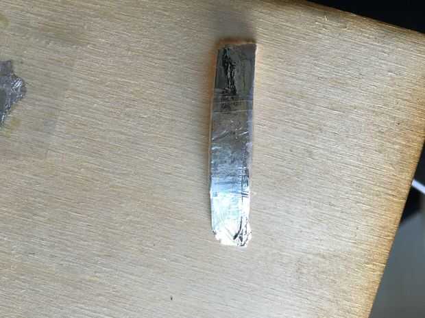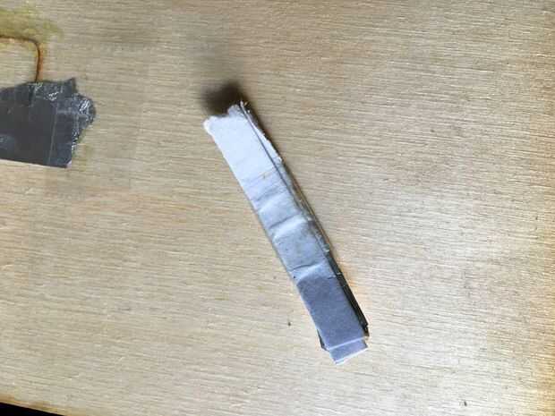 Doblé algunos papel y doblado se. Grabado juntos para mantenerlo en su lugar. (3 cm de largo, 0,5 cm de ancho)