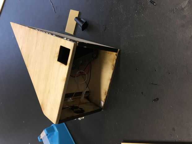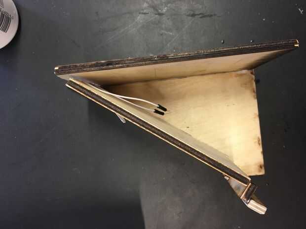 La parte pequeña al lado de la pieza con agujeros tendrá un pequeño hueco para el cable de carga.
