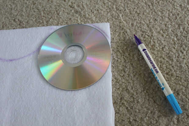 Usar su camiseta plantilla para determinar donde debería estar su escote y como ancho y profundo necesita y esto marca con su marcador de tinta desaparece. Haría el escote un poco más grande que el cuello de la camisa de su plantilla ya que el fieltro no es tan elástico como tejidos. A continuación, utilizar un CD u otro objeto redondo para redondear las esquinas como un iPhone.