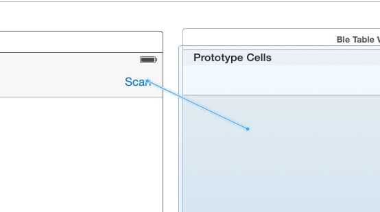 Establecer título de botón de la barra a "Scan." A continuación, mantenga presionada control, haga clic y arrastre desde el botón de exploración para el controlador de la vista de tabla. Cuando lo suelte le será dado varios segue opciones, seleccione "Insertar"