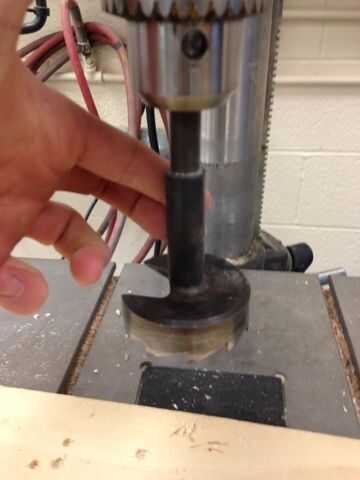 Usé una broca tipo forstner de 3" para hacer mis agujeros porque creo funcionan mejor las brocas para agujeros normales. Pero los dos servirán para hacer este paso. Usé un taladro de columna y pasé un tiempo midiendo y alineando los agujeros. Hay hacer los tablas de cortes en las dos.