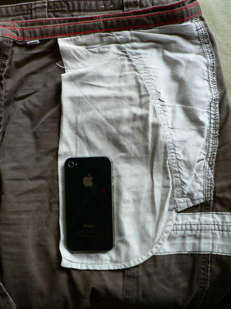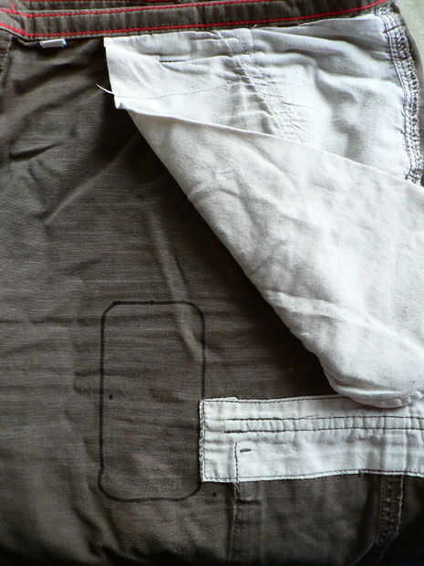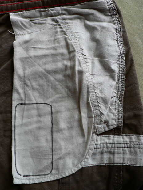3) gire el pantalón interior y trace una línea alrededor donde tu iPhone donde la ventana se va a ir (Foto 3 y 4).