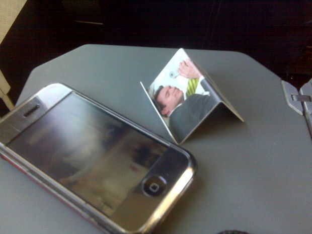 Probé la tarjeta, algunos origami unos y algunos otros medios (había cortado una de plástico) pero todos ellos eran demasiado involucrados para recrear el aire o no lo suficientemente resistente para mantener la cosa en el ángulo derecho.