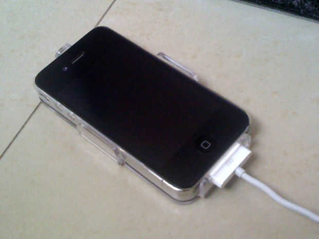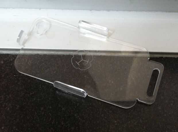 Regularmente probar su trabajo para asegurarse de que su iPhone (protegido por su caparazón) está correctamente ajustado y que las patas no estén demasiado apretadas. Cuando me imaginaba este apoyo, que quería el iPhone ser sostenido firmemente (o "recortadas") en el soporte. De hecho, no es necesario y no es muy práctico. Debido a la inclinación de la cuna, la gravedad es suficiente para mantener en su lugar.
