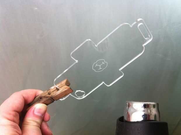 Una vez que la pierna caliente, alinee los residuos de acrílico en el contorno de la cuna, doblarlo y todo apriete en el soporte de metal para formar un ángulo recto. Espere unas pocas decenas de segundos y luego repetir para las otras tres patas. La más importante es la más baja desde la apertura debe estar perfectamente alineada con el conector.