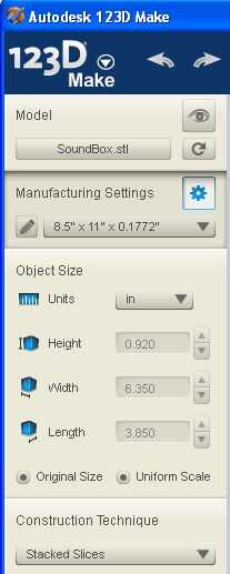 Utilizaremos 123D Make hacer un SoundFrame utilizando el método de "Apilar rebanadas" de cartón.