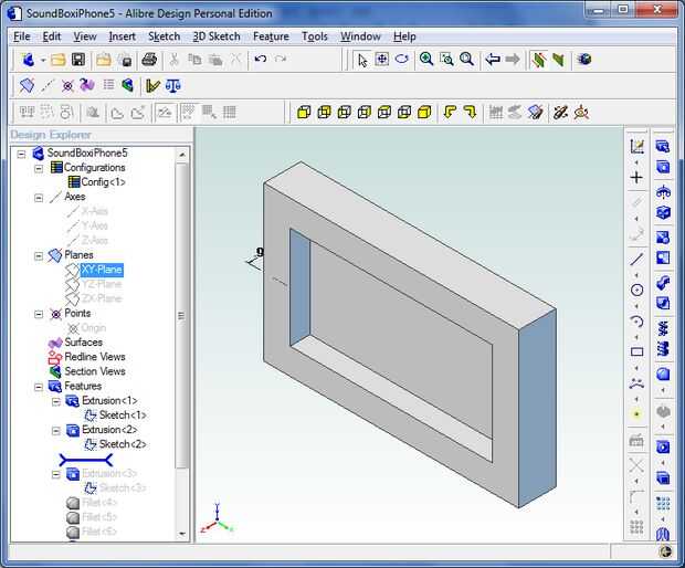 Ahora haciendo clic en la superficie frontal del bloque recién creado, crear un rectángulo 0,65 pulgadas en cada lado. Este rectángulo se corte hacia abajo en el bloque y será el bolsillo que el iPhone se basa en. Puede que necesite ajustar sus dimensiones un poco aquí, dependiendo del grosor de la caja del teléfono. Básicamente, las dimensiones del rectángulo interno necesitan para que coincida con las dimensiones exteriores de tu iPhone en su caso. El iPhone 4 por ejemplo tiene diferentes dimensiones para que ajustar para al hacer el rectángulo interior coincida con el contorno del teléfono. PRECAUCIÓN – la posición del altavoz del iPhone 4 también es un poco diferente para la captura de sonido ranura también tendrá que ajustarse, pero llegaremos a eso más adelante.