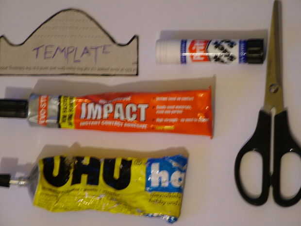 Pegamento - yo uso pegamento de impacto del palillo de Evo, pero una barra de pegamento o UHU debería funcionar bien.
