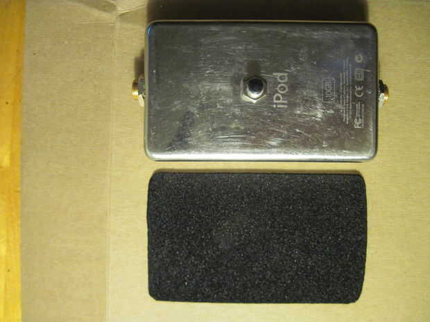 Tortazo de la espuma en el ipod y se alinean para que seque bien. Aplique presión presionando hacia abajo sobre la superficie de trabajo hasta que usted sienta que no necesita más.