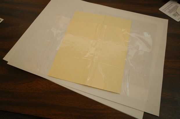 Después de cortar la manga interna. El resto de la carpeta será la manga interior. Utilice la cinta de embalaje para cubrir un lado de la carpeta con la cinta. Tratar de hacer los bordes de la cinta Alinee exactamente con ninguna burbuja de aire o superposición. Si terminas con burbujas de aire, haga un orificio pequeño en ellos con la punta de la XActo y debe suavizar.