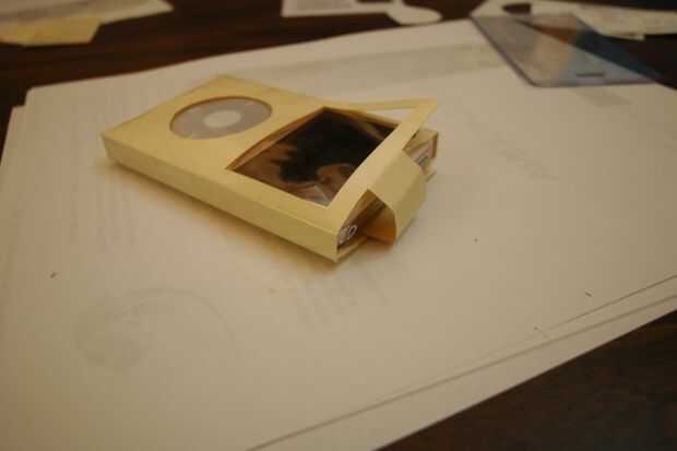 saqué una baraja de cartas y ahuecado un espacio interior para mi Ipod Nano.Luego montar el Ipod dentro y había montado en una tarjeta en la espalda y uno con un agujero de observación en el frente...Todavía puede utilizar la rueda de clic y es fácil