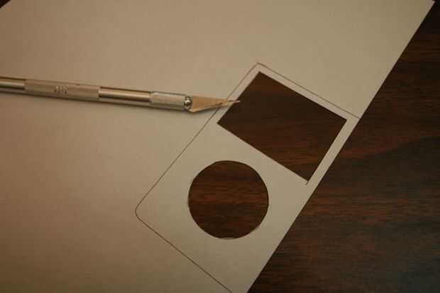 saqué una baraja de cartas y ahuecado un espacio interior para mi Ipod Nano.Luego montar el Ipod dentro y había montado en una tarjeta en la espalda y uno con un agujero de observación en el frente...Todavía puede utilizar la rueda de clic y es fácil