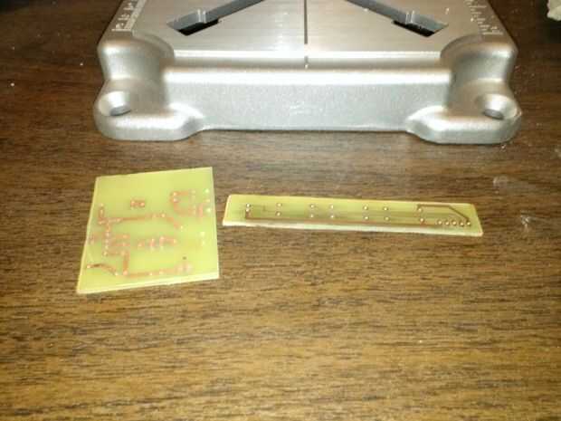 Desde el tablero principal tenía un montón de conexiones y debían ser doble cara, lo tenía fabricación de Seeed Studio. Yo puedo grabar decentemente solo echado a un lado PCBs pero no valía la pena la molestia para tratar de hacer un tablero de doble cara yo. Los tableros de interfaz y botón se podrían hacer una cara así que decidí grabar esos yo y ahorrar algo de dinero. No voy a hablar de grabado de placas aquí pero si quieres probar tu mano en él allí son varias buenas instructables que cubren en gran detalle.