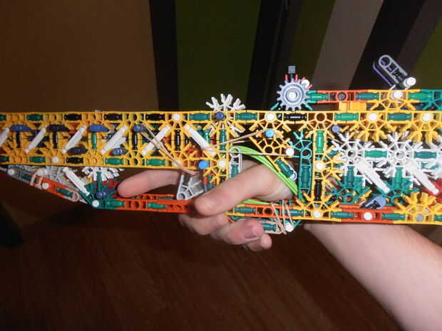 Cómo el cortarla gancho en la parte delantera. Van alrededor de los ojos y gancho en solamente un lado del cañón. Porque no están centradas en los trinquetes, esto realmente hace que las bandas volar straight-ish.