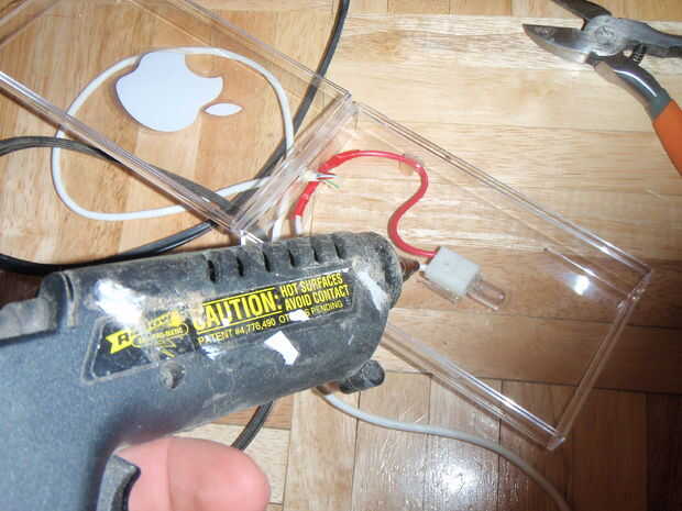Usar la pistola de pegamento para colocar la luz en el centro del caso.