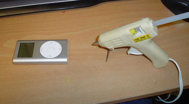 También, tendría cuidado con una pistola de pegamento de temperatura alta, puede o no fundir o deformar el plástico, trato de no y de un arma puede ser mucho mayor y luego otro, por lo que no dices que no advirtió si una pistola de pegamento de temperatura alta derrite tu ipod y come su primer nacido.