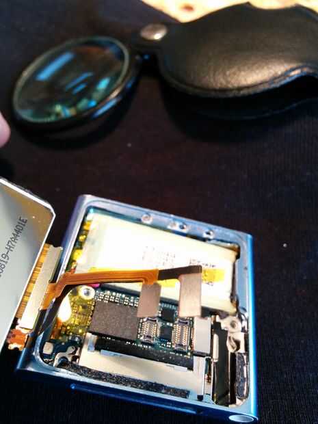 Cuidadosamente un encaje a presión el cable de la placa lógica que quede dos casquillos adyacentes en la placa lógica. Una vez que la pantalla está apagada, semejantemente un Inserte la conexión pasada viene debajo de la placa lógica. La batería puede ser levantada si es necesario, pero sin necesidad de desconectarlo