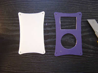 Añadir tu iPod entre los recortes y colocar a los espaciadores de nylon en cada esquina del iPod y en las esquinas de los cortes de hueso de perro. Asegúrese de que existe amplio material donde se perforarán los orificios.