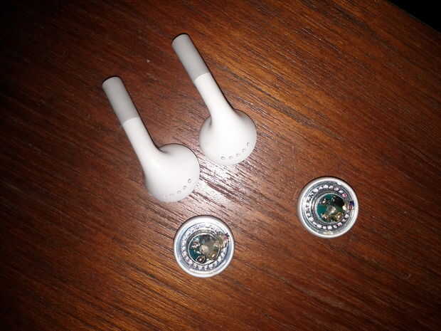 Lo desmontado mis auriculares del Ipod fue para un par destruí completamente la parte delantera del brote de oído para salvar la parte de atrás y el opuesto para el otro par, el otro par salvado el frente y lo que me quedé con la parte delantera y trasera de Ipod oído brotes indemnes.
